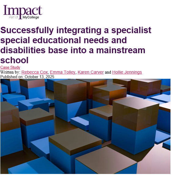 In October 2025 we had an article published by the Chartered College of Teaching documenting our development of specialist bases.